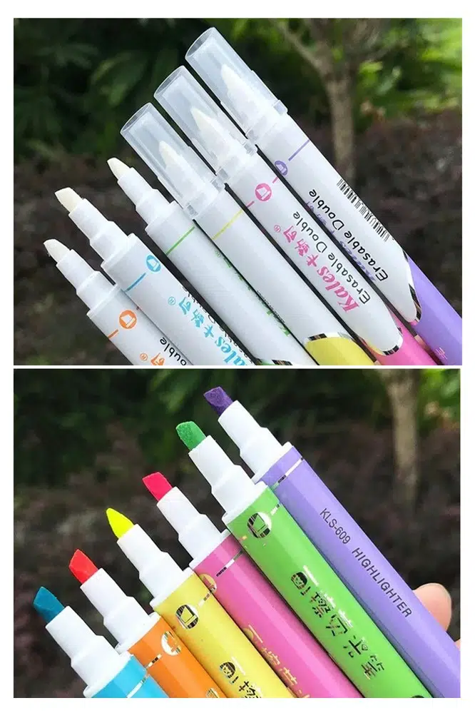 Ürün Adı: Silinebilir Fosforlu Kalem 6 Renk 1 Paket Mikro Silinebilir İşaretleme Kalemi Çift Başlı Pürüzsüz Yazma ve Silme