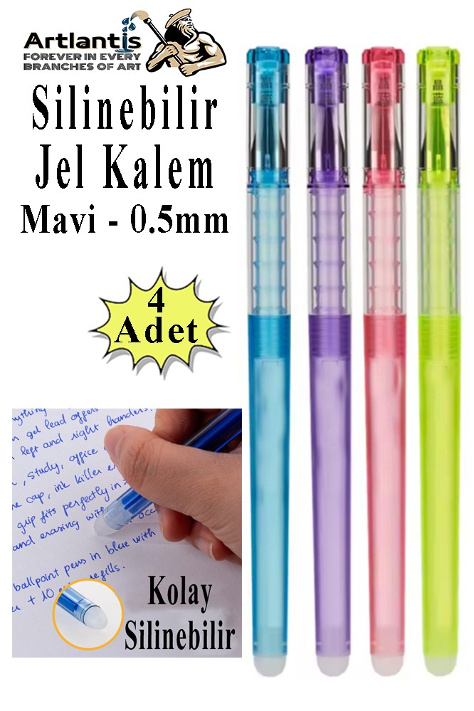 Ürün Adı: Artlantis Silinebilir Jel Kalem Mavi 0.5 mm 4 Adet Silinebilir Tükenmez Kalem Pilot Kalem Mürekkepli Kolay Silinebilir Kumaş Kalemi