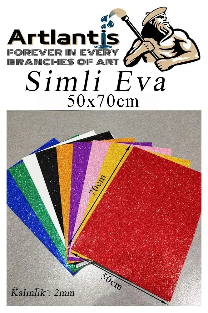 Ürün Adı: Simli Eva 50x70 cm 10 Renk 1 Paket Simli Eva Süngeri 10'lu Okul Kreş Anasınıfı Elişi Etkinlikleri