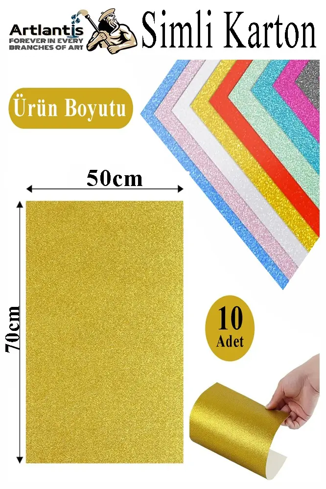 Ürün Adı: Simli Karton 50x70 cm 10 Renk 1 Paket 10 lu Simli Karton Parıltılı Kağıt Anasınıfı Kreş Etkinlik Proje Dekoratif