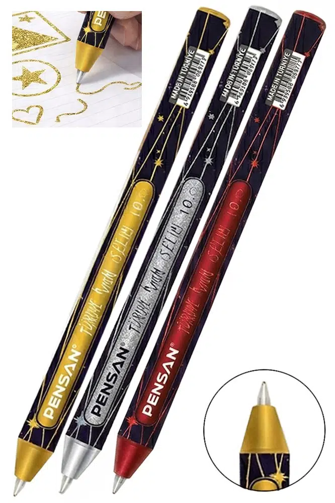 | Etiketler | Simli Tükenmez Kalem 3 Renk Pensan Jely Simli Pilot Kalem Ergonomik Tutuş Yumuşak Yazım Siyah Defter Renkli Kalem |