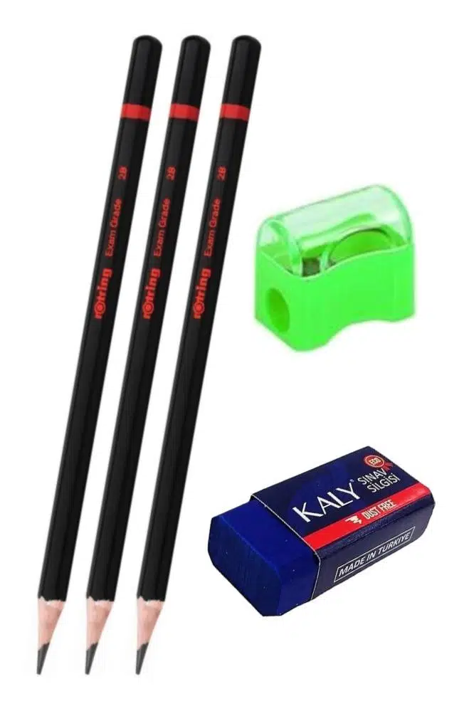 Ürün Adı: Sınav Kalemi Seti 1 Paket 3 Adet Yumuşak Uçlu Kurşun Kalem 2 B 1 Adet Kalemtraş ve 1 Adet Sınav Silgi