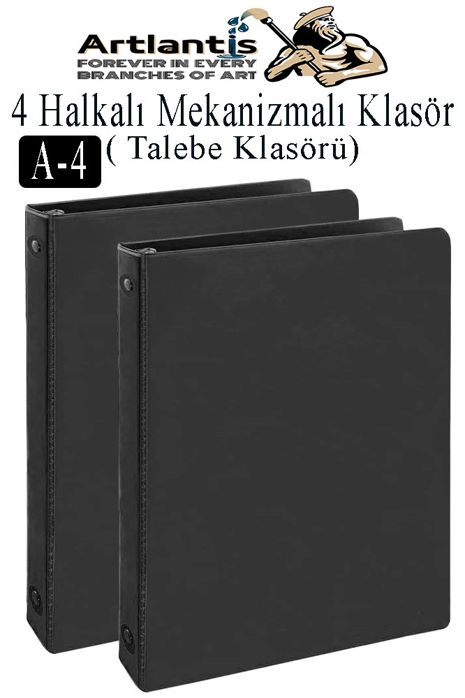 Siyah 4 Halkalı Klasör 2 Adet A4 PVC Öğrenci ve Ofis Tipi Evrak Sunum Klasörü İç Cepli Otomatik Mekanizmalı Büro Okul Arşivle