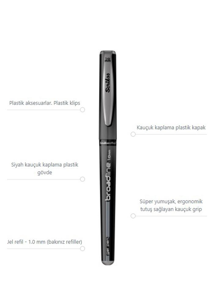 - Scrikss Office serisindeki Broadline kalemler yüksek hacimli refili ve hızlı kuruyan jel mürekkebi ile yumuşak ve akıcı yazım keyfi sunuyor. Scrikss Broadline jel kalemler; uç kalınlığı ve akışkan mürekkep kalitesiyle iş hayatında ve günlük hayatta rahat imza atmayı sağlıyor. 1 mm. uç kalınlığı ve jel mürekkebiyle yumuşak yazım konforu sunan Scrikss Broadline kalemleri, mavi, siyah ve kırmızı renk alternatifleriyle imzaları kalıcı kılıyor.