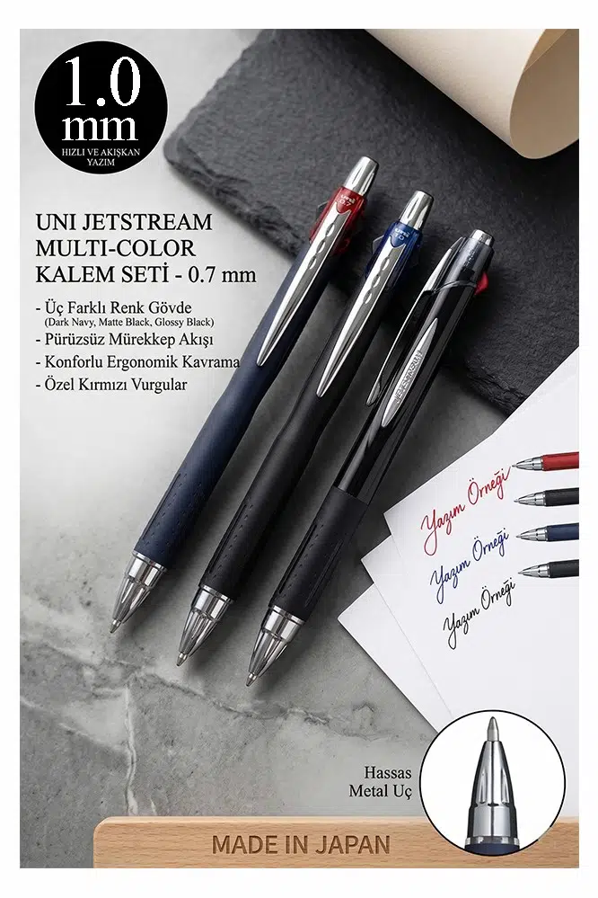·Benzersiz Yazım Hızı: Jetstream mürekkebi, standart tükenmez kalemlere göre çok daha düşük sürtünme katsayısına sahiptir. Kağıt üzerinde adeta kayar.