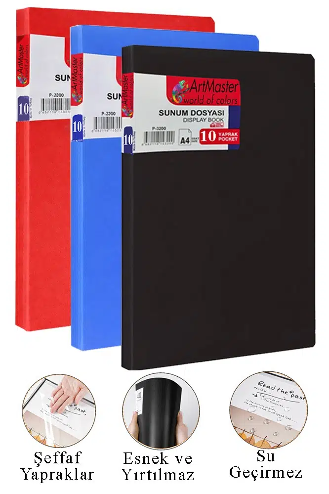 Ürün Adı: Artmaster Siyah Kırmızı Mavi Sunum Dosyası 10 lu 3 Adet Poşet Dosyalı Katalog Dosyası 10 Poşetli Kendinden Dosya Plastik Kapaklı