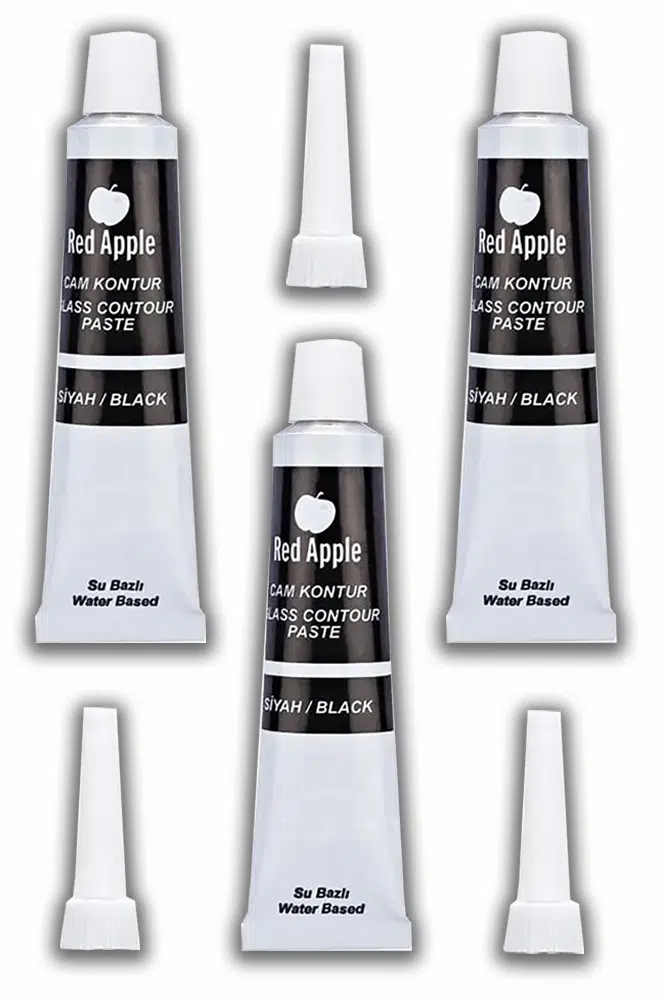Ürün Adı: Siyah Kontür Boyası 20 ml 3 Adet Red Apple Cam Vitray Boyası Kontur Boyası Ana Hatları Çizme Sanatsal Hobi