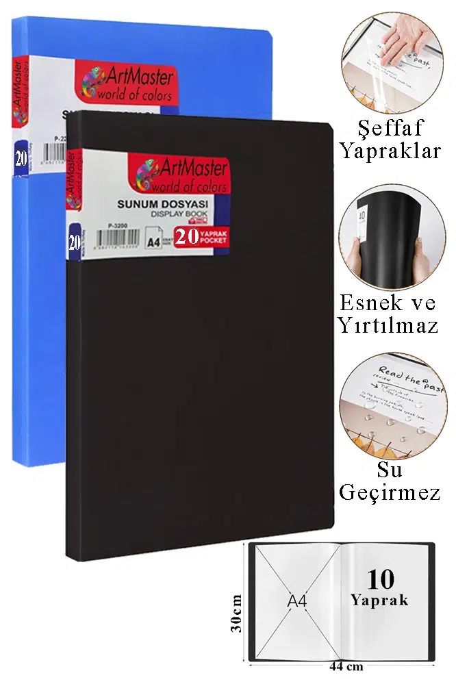 Ürün Adı: Artmaster Siyah Sunum Dosyası 20 li 2 Adet Poşet Dosyalı Katalog Dosyası 20 Poşetli Kendinden Dosya Plastik Kapaklı