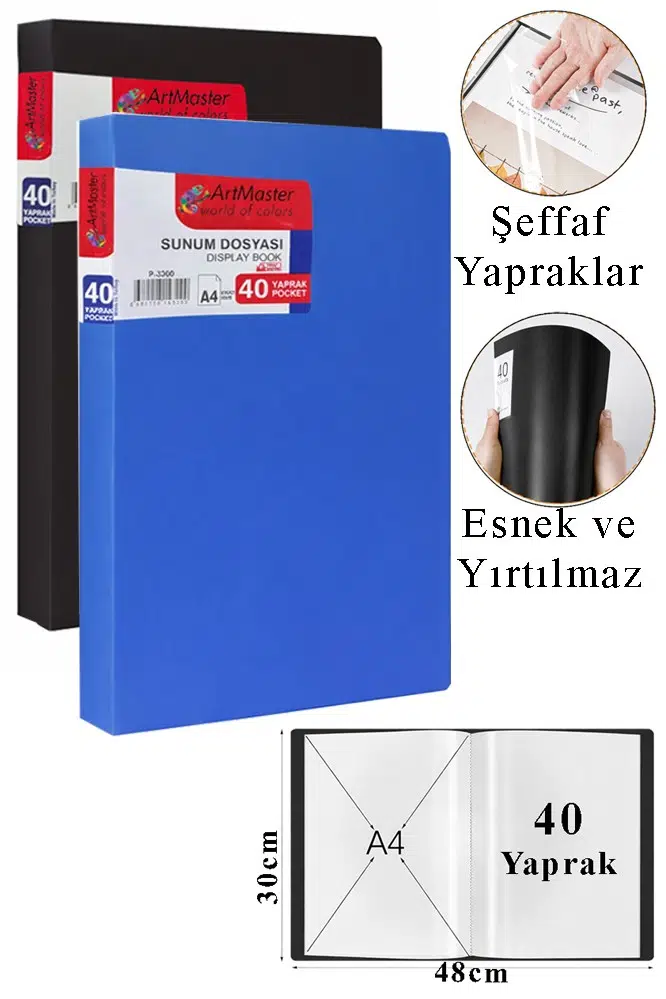 Ürün Adı: Artmaster Siyah Mavi Sunum Dosyası 40 lı 2 Adet Poşet Dosyalı Katalog Dosyası 40 Poşetli Kendinden Dosya Plastik Kapaklı