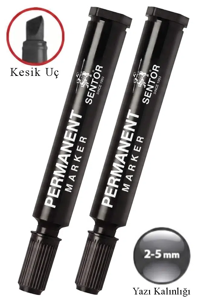 Ürün Adı: Siyah Permanent Markör Kalem Kesik Uç 2 Adet Sentör Kalıcı Marker Kalem Tüm Koli Karton Çuval Cam Plastik Yüzeylerde