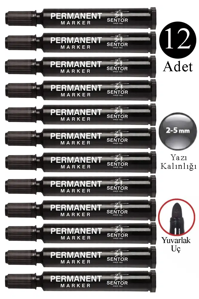 | Etiketler | Siyah Permanent Markör Kalem Yuvarlak Uç 12 Adet Sentör Kalıcı Marker Kalem Tüm Koli Karton Çuval Cam Plastik Yüzeylerde |