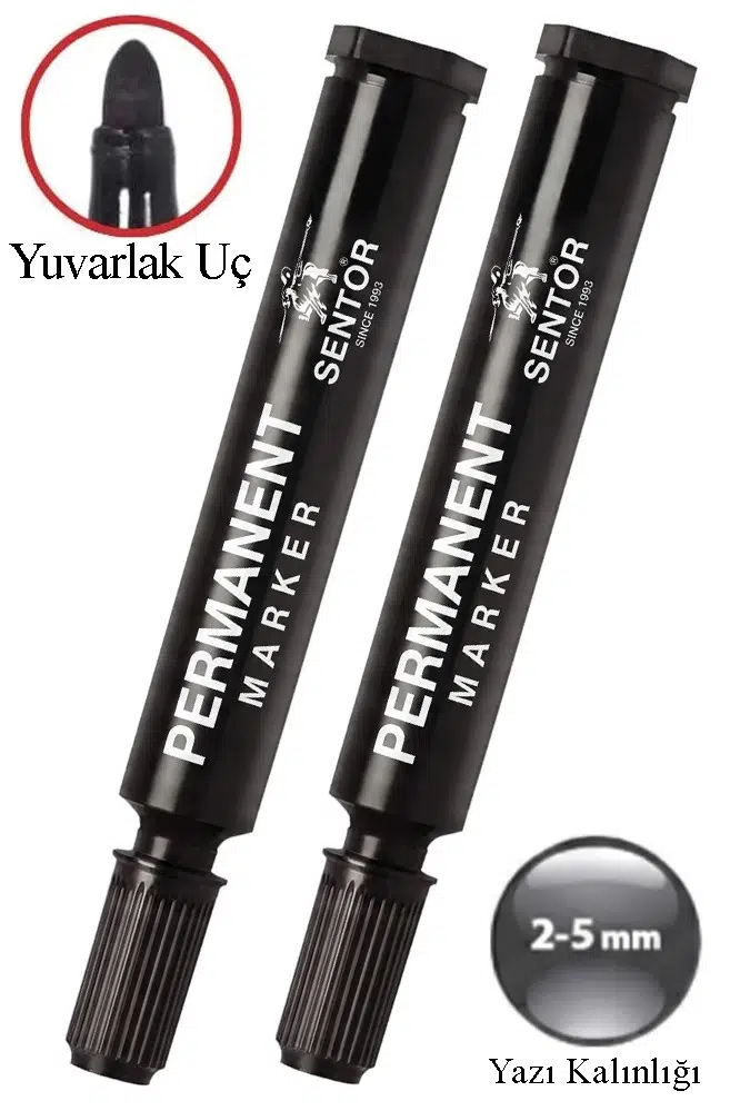Ürün Adı: Siyah Permanent Markör Kalem Yuvarlak Uç 2 Adet Sentör Kalıcı Marker Kalem Tüm Koli Çuval Cam Plastik Yüzeylerde Kalıcı