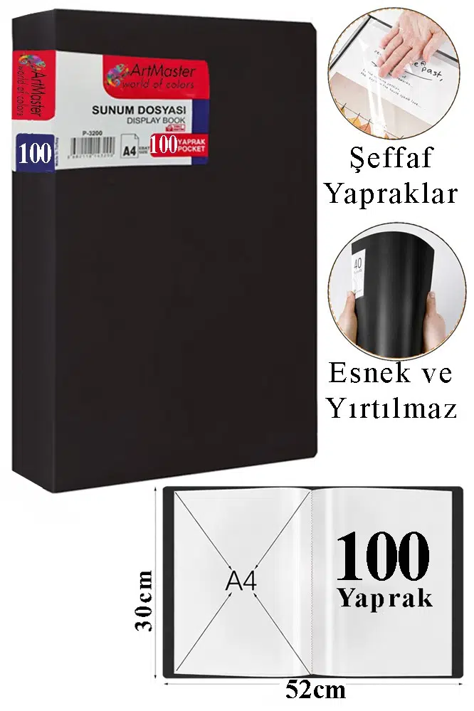 Ürün Adı: Artmaster Siyah Sunum Dosyası 100 lü 1 Adet Poşet Dosyalı Katalog Dosyası 100 Poşetli Kendinden Dosya Plastik Kapaklı