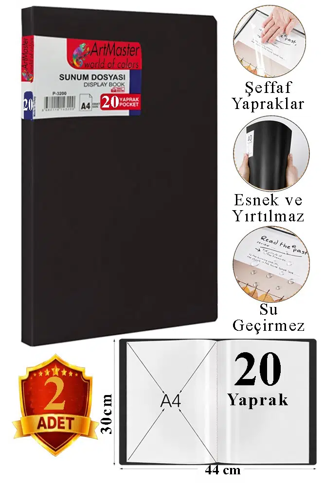 Ürün Adı: Artmaster Siyah Sunum Dosyası 20 li 2 Adet Poşet Dosyalı Katalog Dosyası 20 Poşetli Kendinden Dosya Plastik Kapaklı