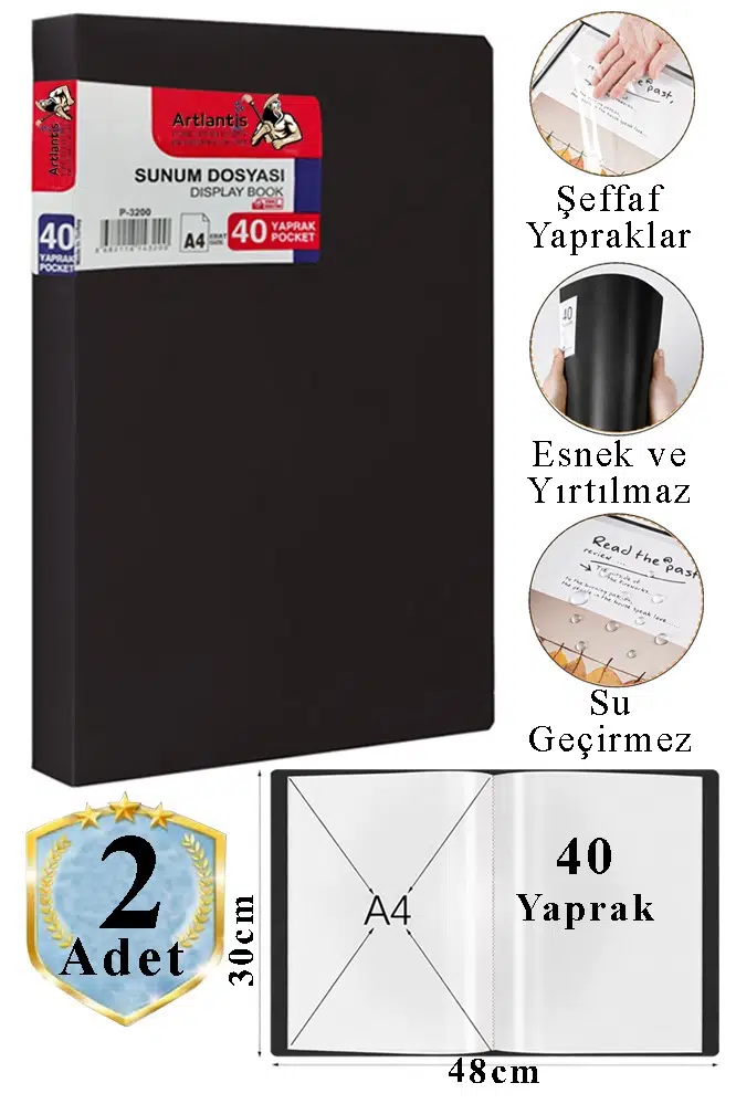 | Etiketler | Siyah Sunum Dosyası 40 lı 2 Adet Poşet Dosyalı Katalog Dosyası 40 Poşetli Kendinden Dosya Plastik Kapaklı |
