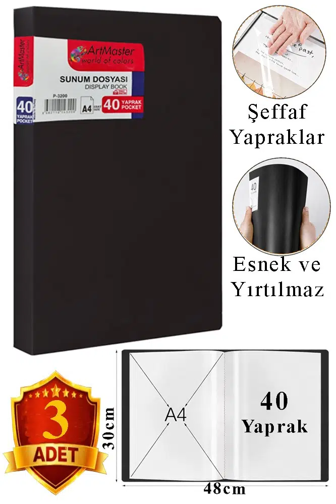 | Etiketler | Siyah Sunum Dosyası 40 lı 3 Adet Poşet Dosyalı Katalog Dosyası 40 Poşetli Kendinden Dosya Plastik Kapaklı |
