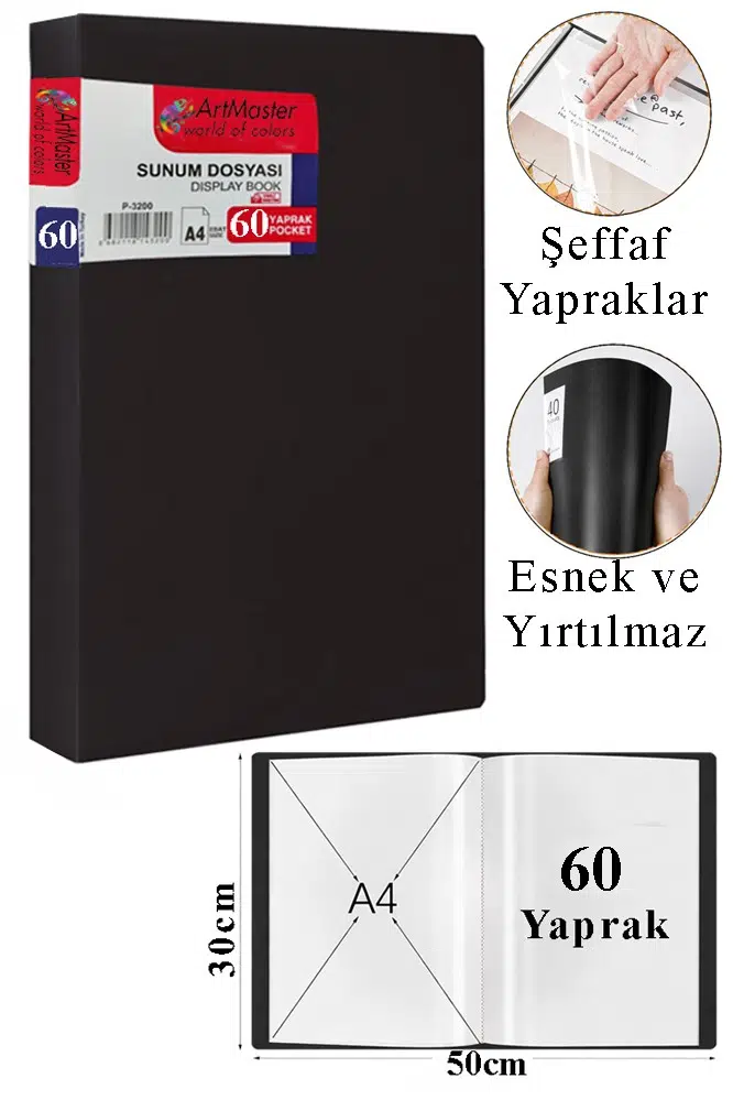 Ürün Adı: Artmaster Siyah Sunum Dosyası 60 lı 1 Adet Poşet Dosyalı Katalog Dosyası 60 Poşetli Kendinden Dosya Plastik Kapaklı
