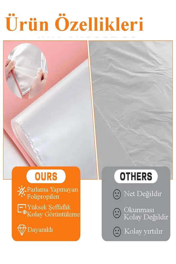 ·Yüksek kaliteli Polipropilen malzemeden üretilmiştir. Asitsiz, suya, dökülmeye ve kire dayanıklıdır. Belgeleriniz için uzun süreli koruma sağlar. Yapışması kolay değildir, okunması kolaydır, HD antistatik iç sayfa, kolay çıkarma için dikey açıklık.Şeffaf kılıf, standart boyut için uygun sunum yapmanıza olanak tanır, ancak rapor sayfaları, fotoğraflar, küçük çocuk çıkartmaları vb. için de uygundur. Şeffaf kılıf, sunumlarınızı rahatça sunmanıza olanak tanır.
