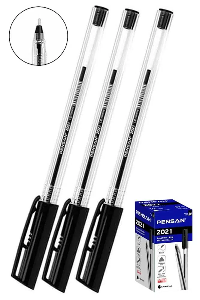 Ürün Adı: Siyah Tükenmez Kalem 2021 1.0mm 3 Adet Pensan Şeffaf Üçgen Gövde Plastik Kapaklı Tükenmez Kalem Büro Ofis