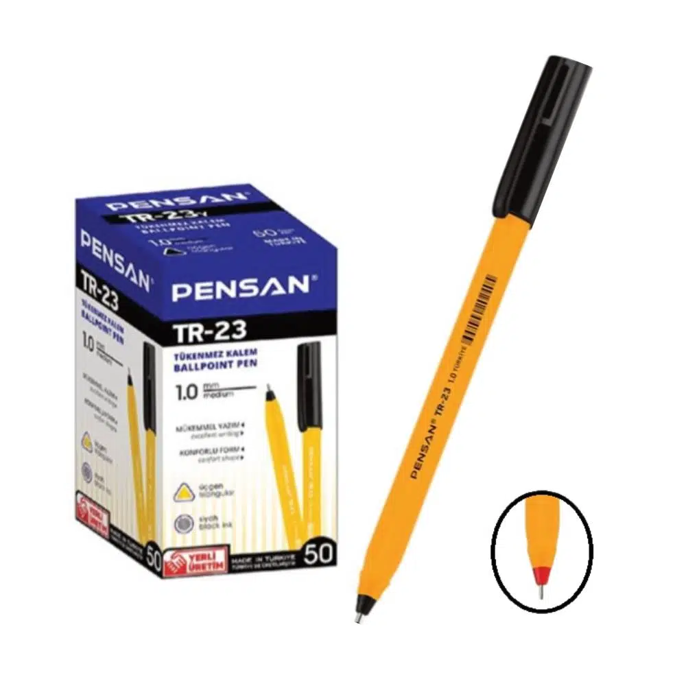 Ürün Adı: SiyahPensan TR23 Tükenmez Kalem Üçgen Gövde 1.00 mm Uç 50 Adet