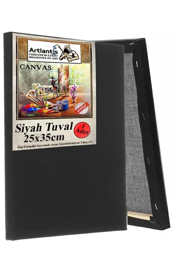 Her türlü resim malzemesi ve her seviyedeki sanatçı için uygun, üçlü astarlı siyah gerilmiş tuvaller. Akrilik, yağlı boya, sulu boya, guaj, tempura, dökme boya, airbrush boya ve diğer ıslak veya kuru resim malzemeleriyle kullanım için idealdir.Orta taneli saf pamuklu tuvaller, boyayı emmeden iyi tutar ve doğal tonunu ve parlaklığını korur.