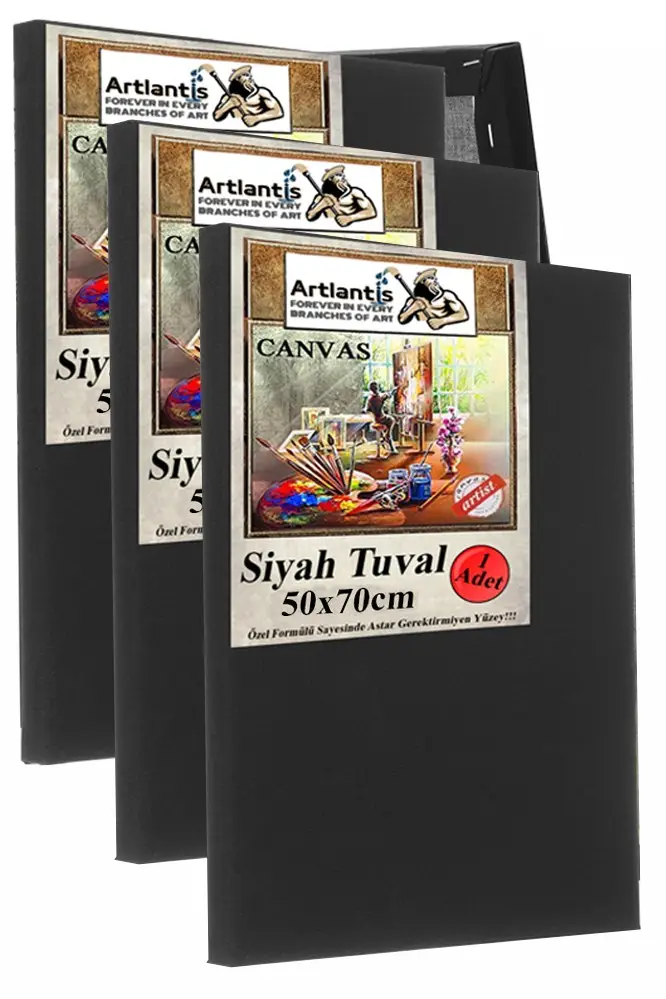 Ürün Adı: Siyah Tuval 50x70 cm 3 Adet Astarlı Kare Tuval Resim Tuvali Siyah 50*70 cm Tual Akrilik Yağlı Boya İçin İdeal