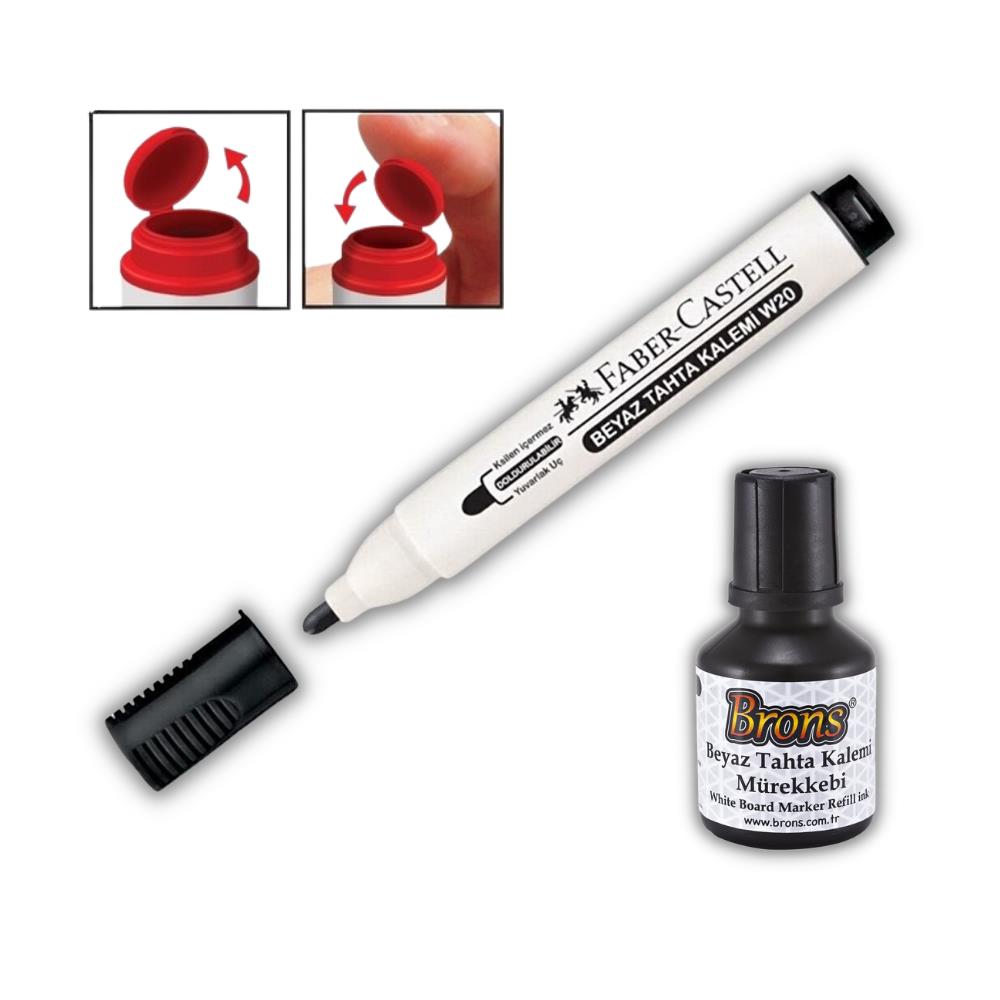 Ürün Adı: Siyah Faber Castell W-20 Yazı Tahta Kalemi 1 Adet Ve 30 cc Mürekkep 1 ADET