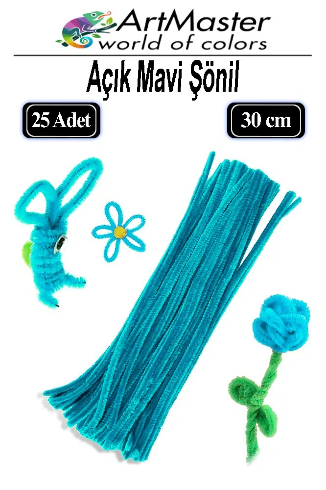 Ürün Adı: Artmaster Şönil Açık Mavi 30 cm 25 Li 1 Paket Renkli Tüylü Tel Şönil Pipo Temizleyici Okul Öncesi Anasınıfı Kreş Hobi Eğitici