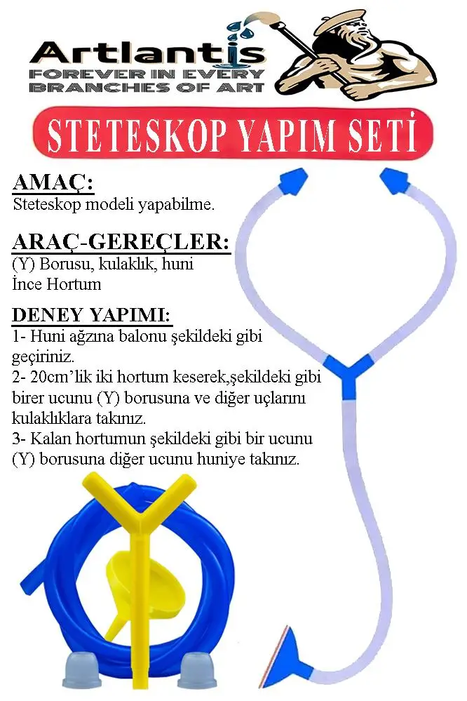 Ürün Adı: Steteskop Yapım Seti 1 Paket Basit Steteskop Modeli Steleskop Deney Seti Proje Tasarım Eğitici Okul Seti