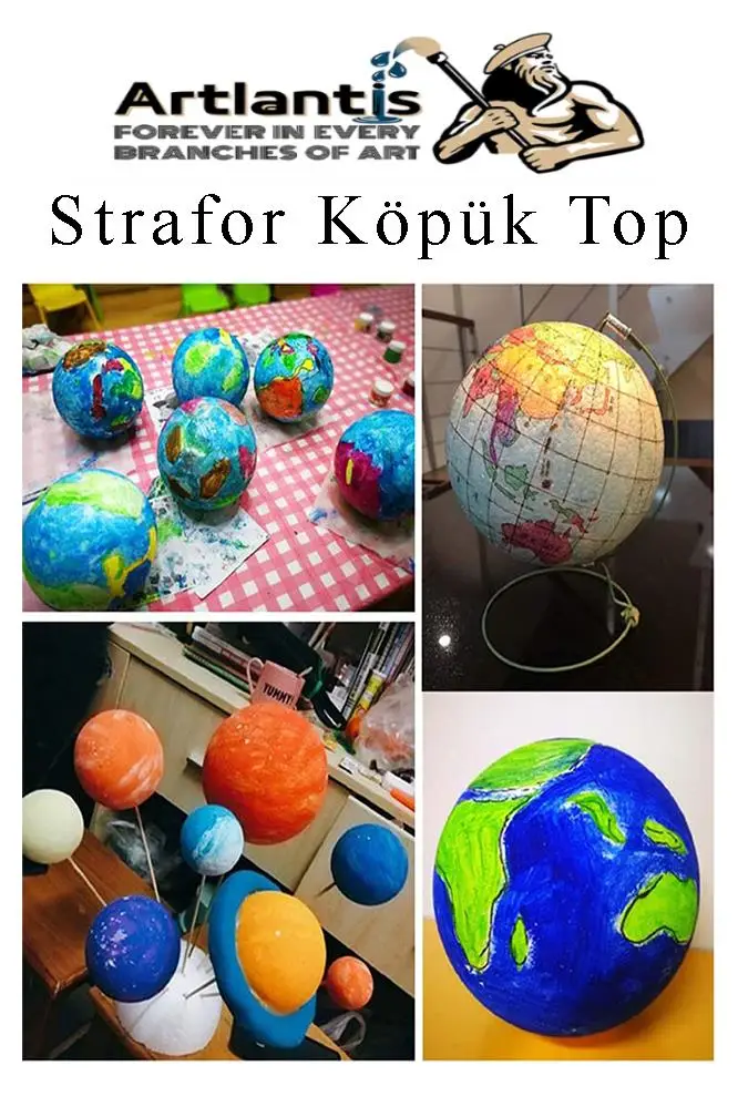 - Magazamızda artlantis marka strafor köpük toplarının bütün ebatlarını bulabilirsiniz Bu beyaz toplar polistirenden yapılmıştır, toplar parlak beyaz renkte pürüzsüz bir yüzeye sahiptir, boyama ve çizim için mükemmeldir. Köpük topu hafif ve pürüzsüz, Sunum panolarına veya asmaya kolay bağlantı için hafif. Boyama ve diawing için mükemmeldir. Ne istersen onu yapabilirsin! Düğünler, Noel, Sevgililer Günü, bebek partileri ve bayram etkinlikleri için mükemmeldir. Bu toplarla parti dekorasyonları yaratın. Köpük topları Noel ağacı süsleri olarak kullanın, Köpük Kardan Adam, güneş sistemi, gezegen inşası yapın, mutlu yüzler, gözbebekleri çizin... Köpük topları kolayca yapıştırılabilir, her türlü 3D modellemeyi yapın, Kendin Yap Okul projeleri, Kendin Yap sanat ve el sanatları evi projeler.