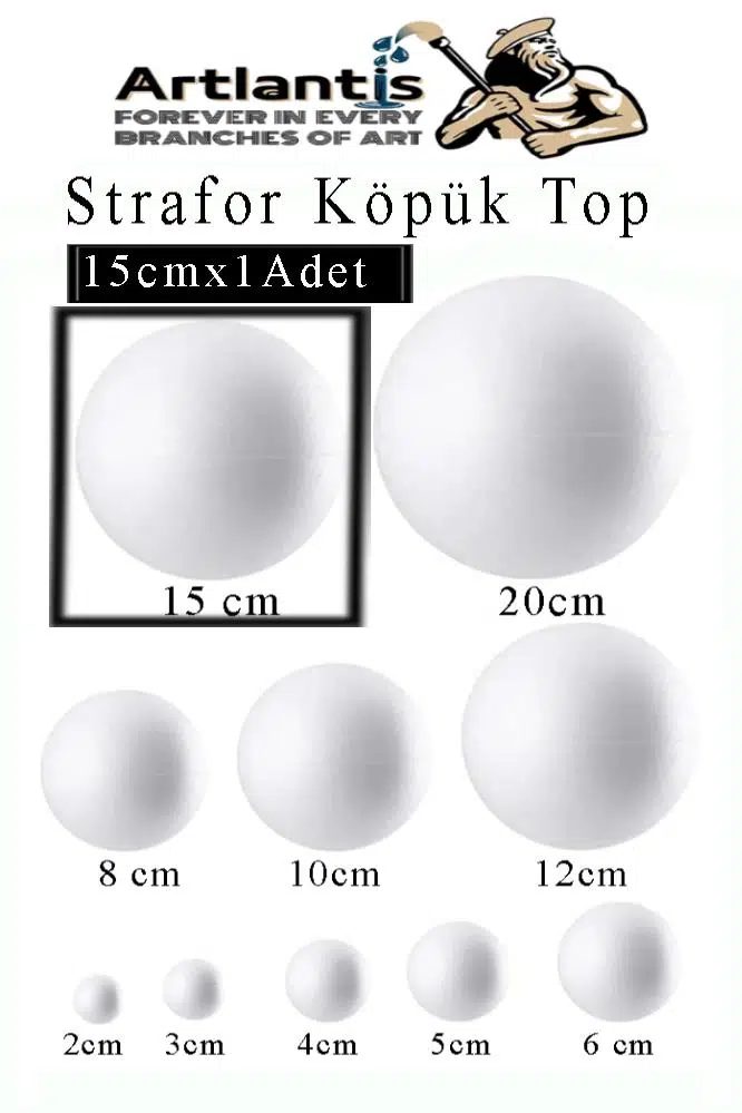- Magazamızda artlantis marka strafor köpük toplarının bütün ebatlarını bulabilirsiniz Bu beyaz toplar polistirenden yapılmıştır, toplar parlak beyaz renkte pürüzsüz bir yüzeye sahiptir, boyama ve çizim için mükemmeldir. Köpük topu hafif ve pürüzsüz, Sunum panolarına veya asmaya kolay bağlantı için hafif. Boyama ve diawing için mükemmeldir. Ne istersen onu yapabilirsin! Düğünler, Noel, Sevgililer Günü, bebek partileri ve bayram etkinlikleri için mükemmeldir. Bu toplarla parti dekorasyonları yaratın. Köpük topları Noel ağacı süsleri olarak kullanın, Köpük Kardan Adam, güneş sistemi, gezegen inşası yapın, mutlu yüzler, gözbebekleri çizin... Köpük topları kolayca yapıştırılabilir, her türlü 3D modellemeyi yapın, Kendin Yap Okul projeleri, Kendin Yap sanat ve el sanatları evi projeler.