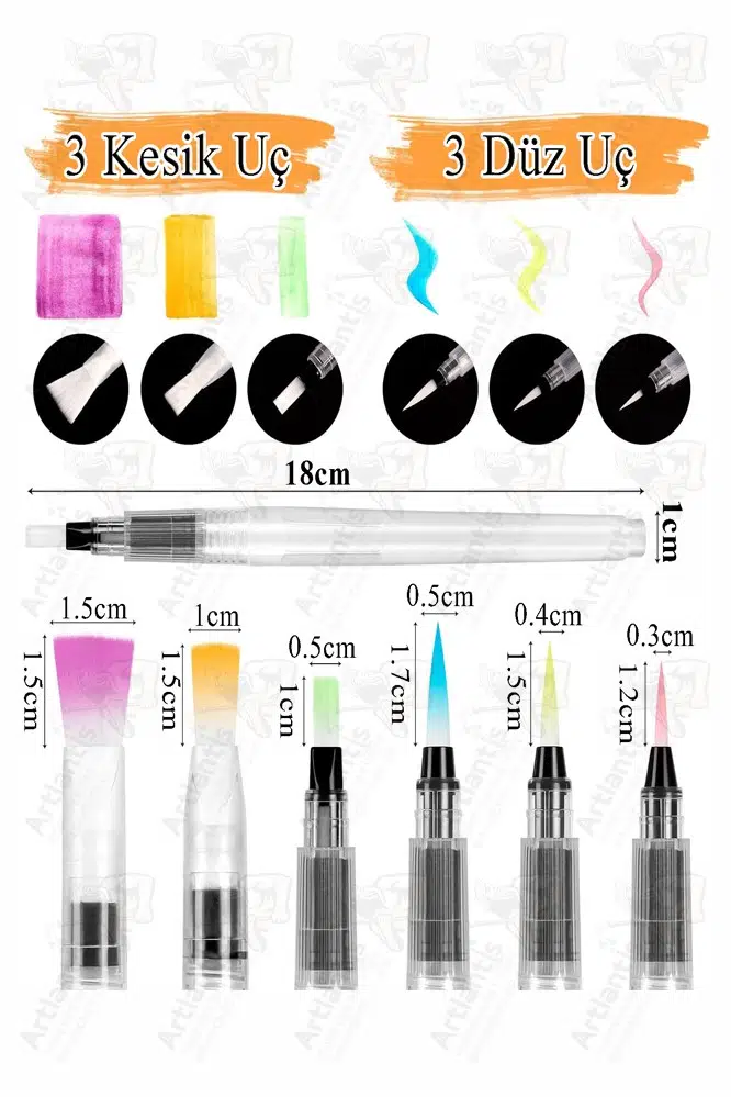 Ürün Adı: Artlantis Su Hazneli Kalem Fırça 6 lı 1 Paket Suluboya Fırça Kalemi Kaligrafi Hat Fırçası Sulu Boya Su Hazneli Kalem Doldurulabili