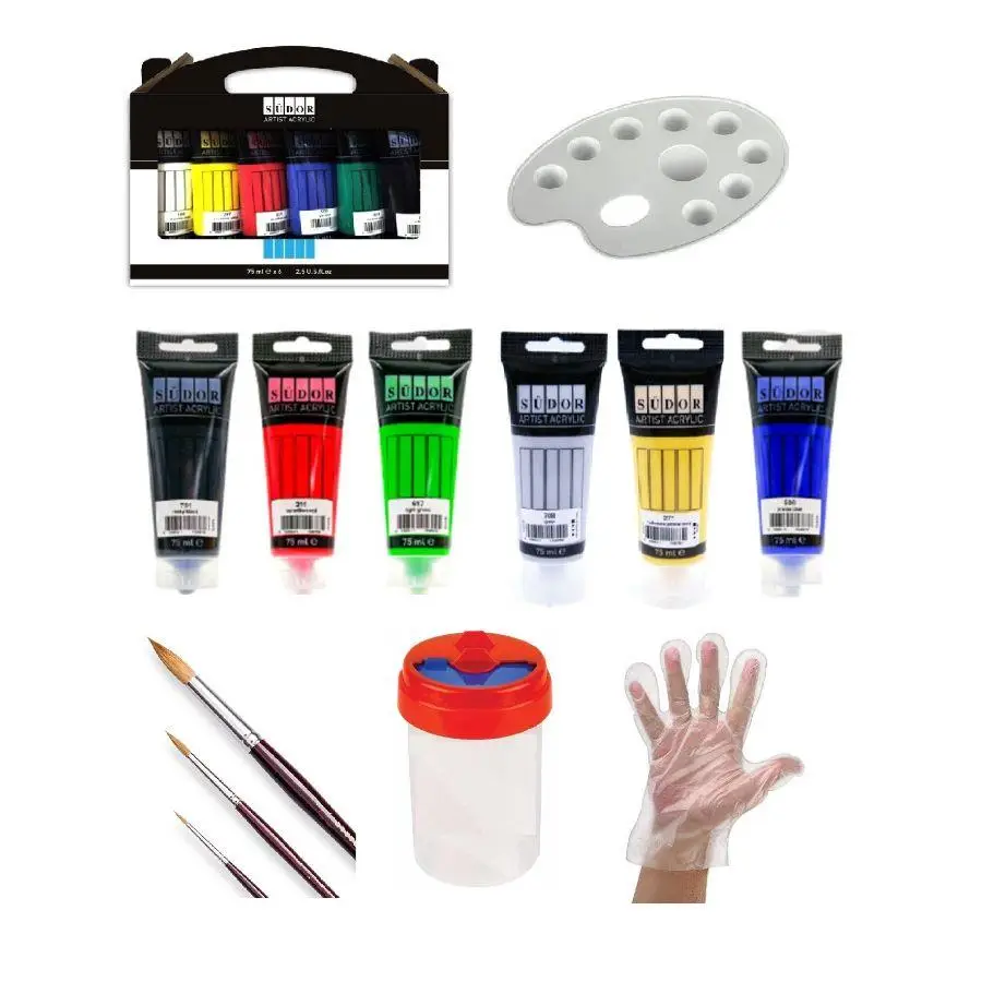 -Südor 6*75ml artist acrylic akrilik boya 6 adet ana renkten oluşmaktadır