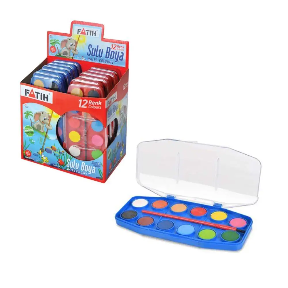 Ürün Adı: Sulu Boya 12 li F-12 Fatih 12 Renk Suluboya 1 Adet