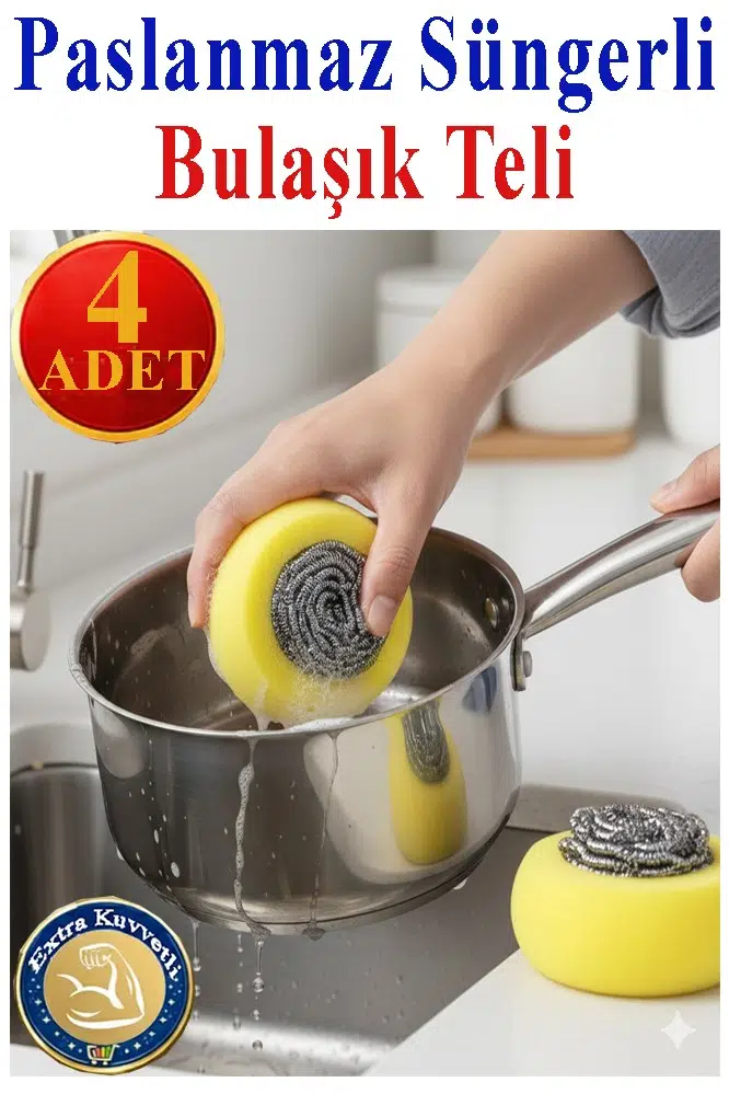 | Etiketler | Süngerli Bulaşık Teli Ovma Teli 4 Adet Pratik Sünger Toptel Sürtme Teli Lavabo Mutfak Banyo Temizlik Teli Sert Yüzey |