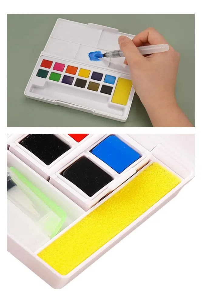 Her Yerde, Her Zan Yaratın: Kutunun kapağı ile zarif taşınabilir seyahat suluboya seti palet olarak kullanılabilir. Su rengi boya seti ayrıca kutuya konabilen bir musluk kalemi içerir: nlu suyla doldurulabilir ve kullanılabilir, rengi değiştirz gerektiğinde suluboya seti ile birlikte gelen süngerdeki rengi emebilirsiniz, böylece hareket halindeyken bile istediğiniz zan boyayabilirsiniz.
