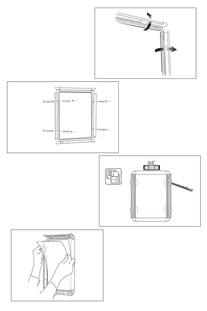 - Anti-ultraviyole PVC koruyucu lens, posteri kötü hava koşullarını, güneş ışığını önlemek ve tozdan ve parmak izlerinden uzak tutmak için net tutmak için posteri kaplar Bu A4 geçmeli resim çerçevesi önden açılacak şekilde tasarlanmıştır ve posteri değiştirirken çerçevenin duvardan çıkarılmasına gerek kalmamasını sağlamak için benzersiz bir yaylı menteşe kullanır