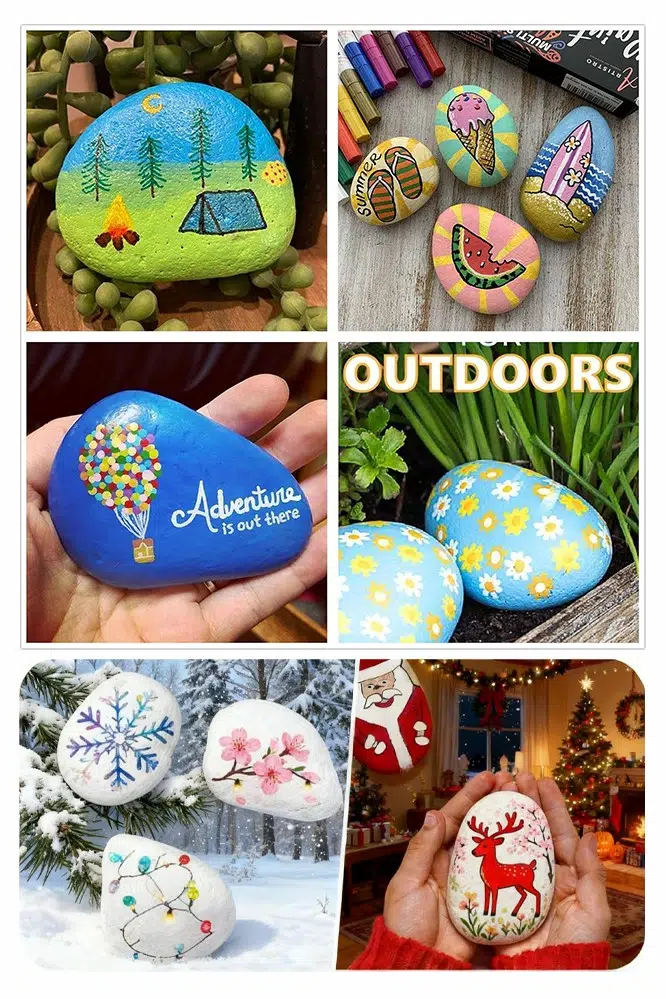Çocuklar, arkadaşları ve aileleriyle yaratıcılıklarını ifade ederken çok eğlenecek! 6 nehir taşı pürüzsüzdür ve birlikte verilen sanat malzemeleriyle kolayca süslenebilir.