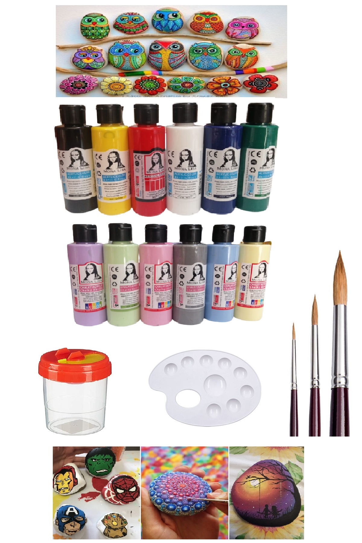 EtiketlerTaş Boyama Seti 6 Ana Renk 6 Pastel Renk Set 1 Paket
