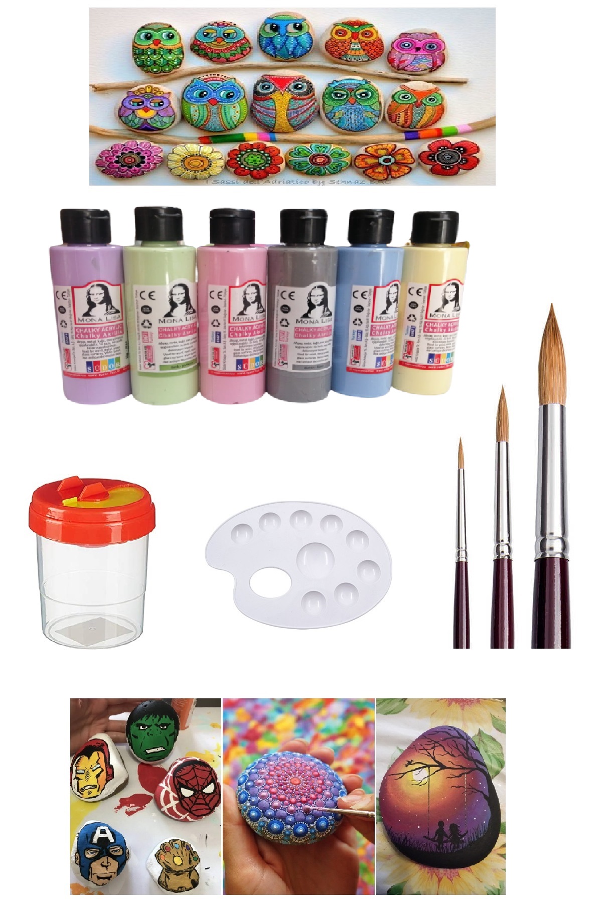 EtiketlerTaş Boyama Seti 6 Pastel Renk Set 1 Paket