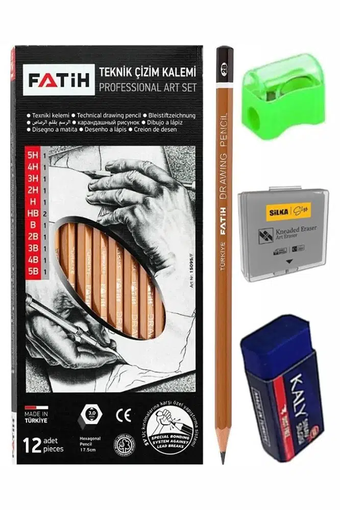 | Etiketler | Teknik Çizim Kalemi 12 li 1 Paket Fatih Dereceli Kalem Seti Kalemtraş Hamur Silgi Eskiz Karakalem Yumuşak Ve Sert Uçlu |