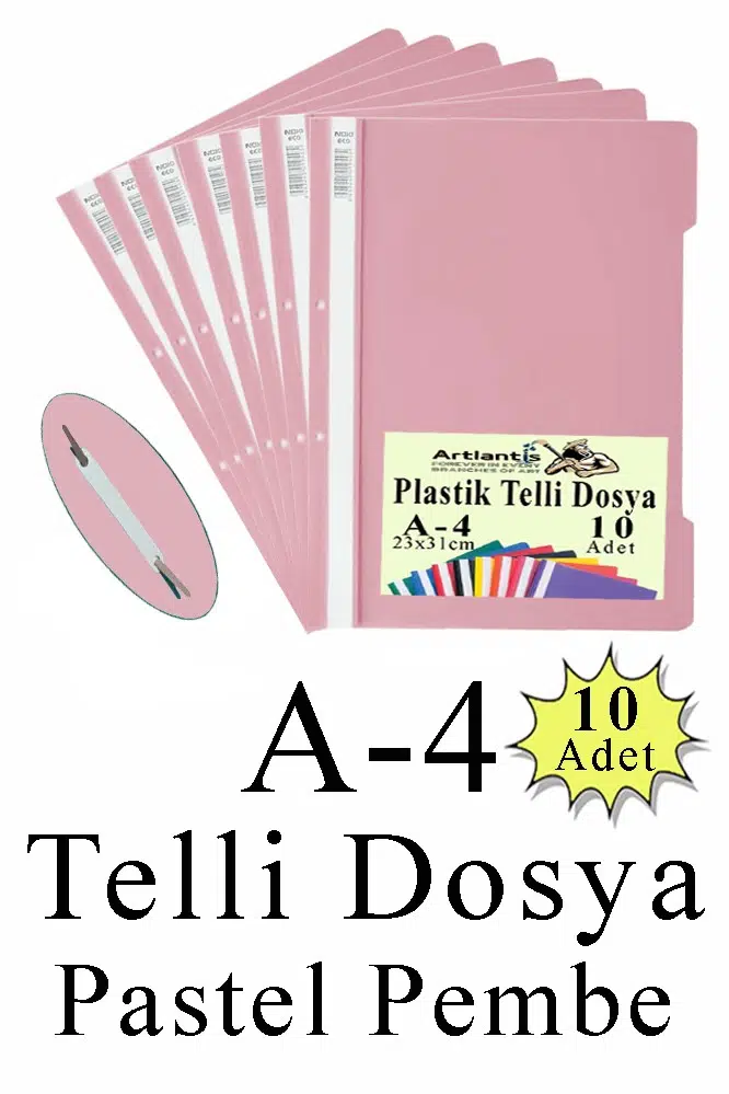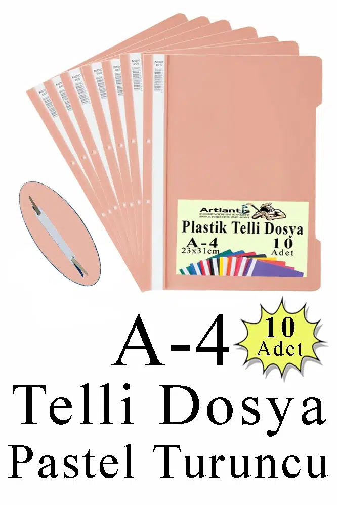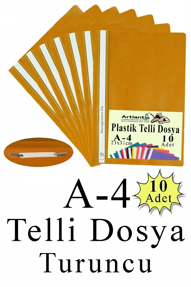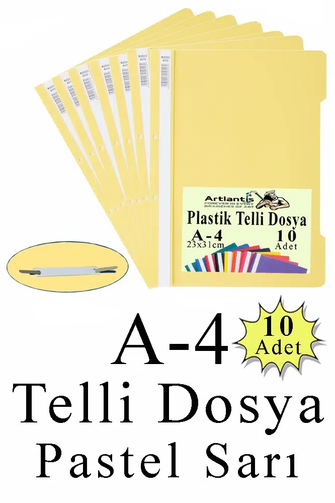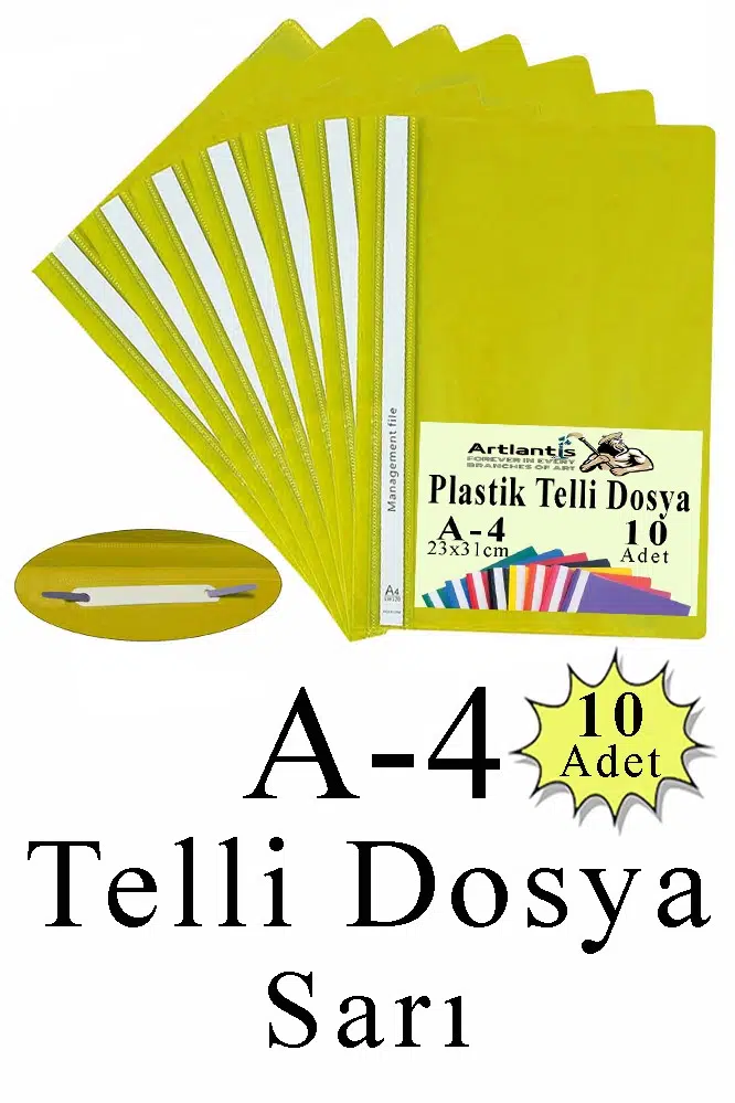 - Artlantis Telli Dosya Ofislerde kullanılan temel kırtasiye malzemeleri arasında yer alan Artlantis telli dosya, evrakların kendi içerisinde gruplandırılmasına yardımcı olur. Artlantis telli dosya sayesinde evraklarınızı tarih, konu ya da önem sırasına göre sıralayarak güvenli bir şekilde saklayabilirsiniz. Artlantis Telli Dosya, telli dosyayı tek bir poşet içerisinde barındıran ekonomik bir pakettir. · Telli şeffaf dosyaları, evrak arşivlemede ya da toplantı ve sunumlarda gönül rahatlığıyla tercih edebilirsiniz Evrak Depolama Kapasitesi: 170 sayfa