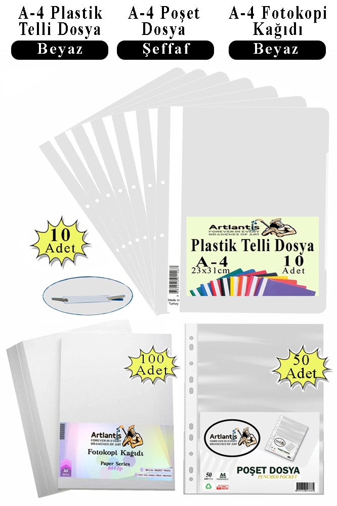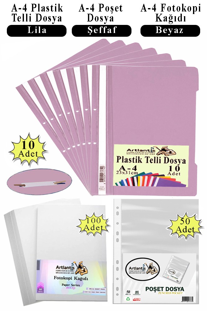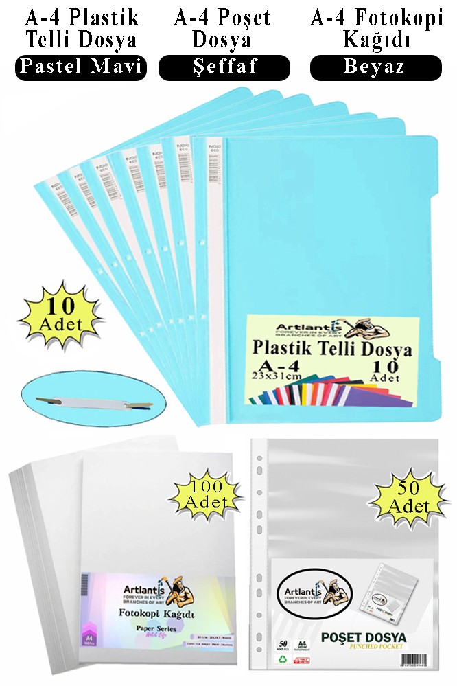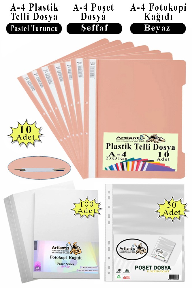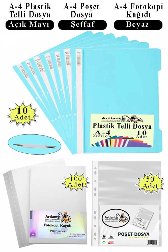 - Artlantis Telli Dosya Ofislerde kullanılan temel kırtasiye malzemeleri arasında yer alan Artlantis telli dosya, evrakların kendi içerisinde gruplandırılmasına yardımcı olur. Artlantis telli dosya sayesinde evraklarınızı tarih, konu ya da önem sırasına göre sıralayarak güvenli bir şekilde saklayabilirsiniz. Artlantis Telli Dosya, telli dosyayı tek bir poşet içerisinde barındıran ekonomik bir pakettir. · Telli şeffaf dosyaları, evrak arşivlemede ya da toplantı ve sunumlarda gönül rahatlığıyla tercih edebilirsiniz Evrak Depolama Kapasitesi: 170 sayfa