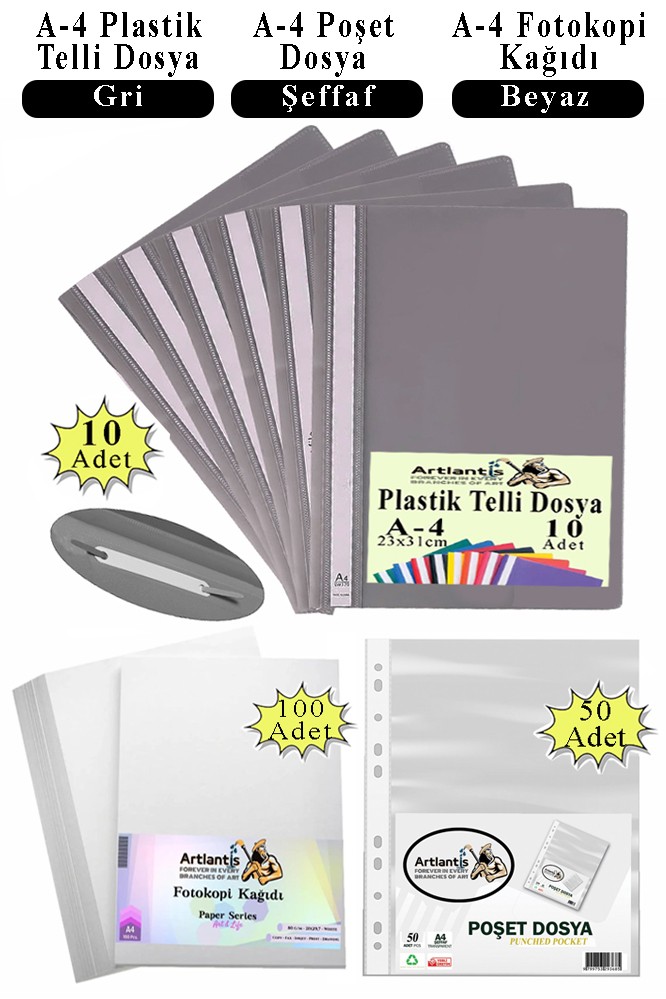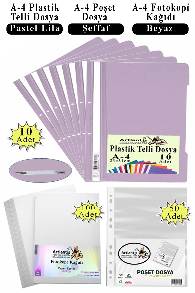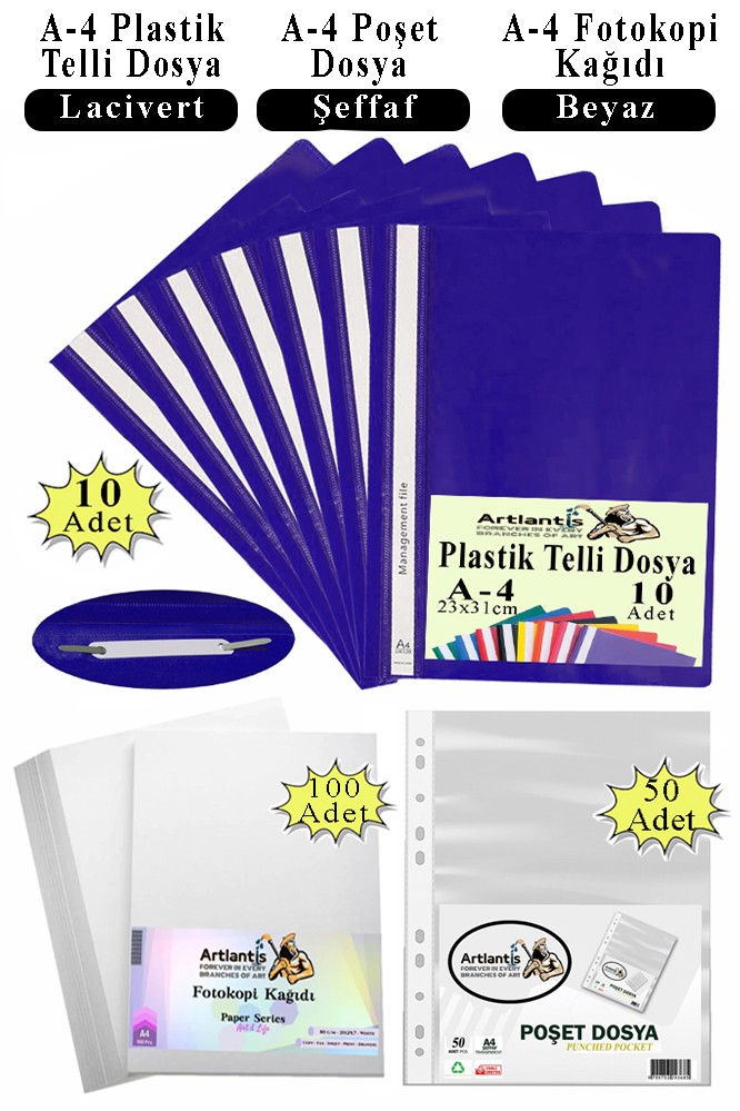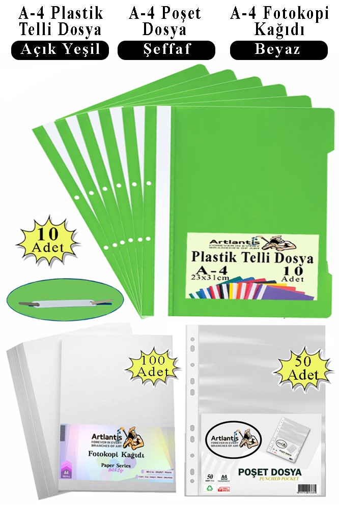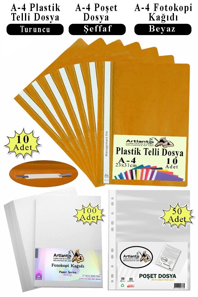 - Artlantis Telli Dosya Ofislerde kullanılan temel kırtasiye malzemeleri arasında yer alan Artlantis telli dosya, evrakların kendi içerisinde gruplandırılmasına yardımcı olur. Artlantis telli dosya sayesinde evraklarınızı tarih, konu ya da önem sırasına göre sıralayarak güvenli bir şekilde saklayabilirsiniz. Artlantis Telli Dosya, telli dosyayı tek bir poşet içerisinde barındıran ekonomik bir pakettir. · Telli şeffaf dosyaları, evrak arşivlemede ya da toplantı ve sunumlarda gönül rahatlığıyla tercih edebilirsiniz Evrak Depolama Kapasitesi: 170 sayfa