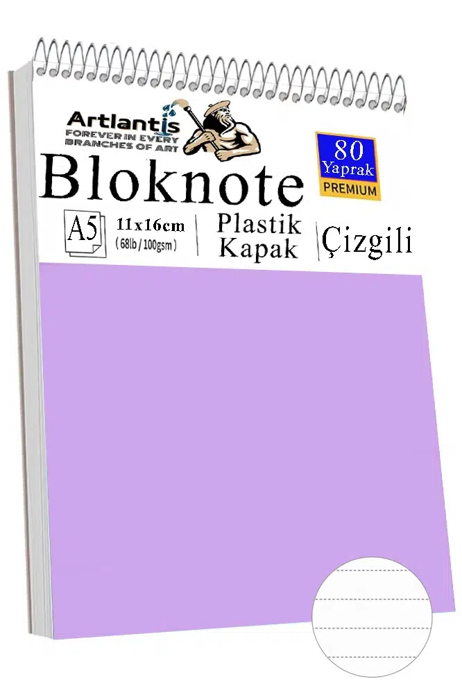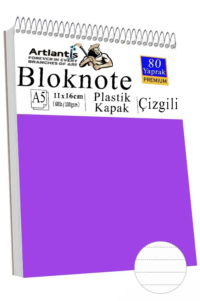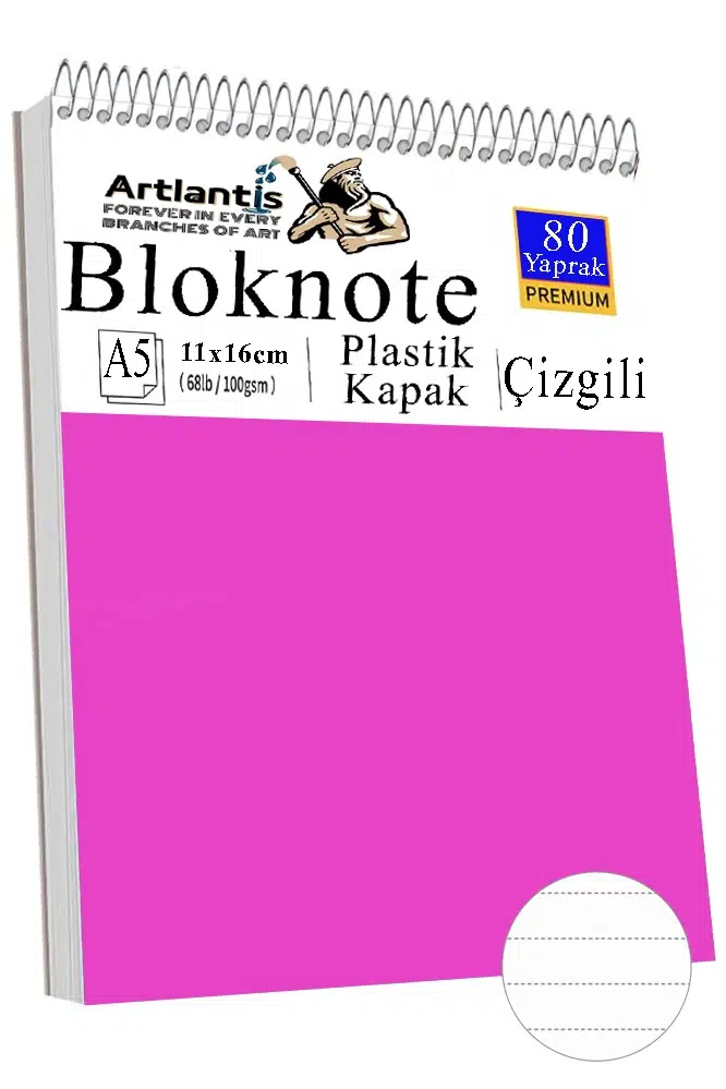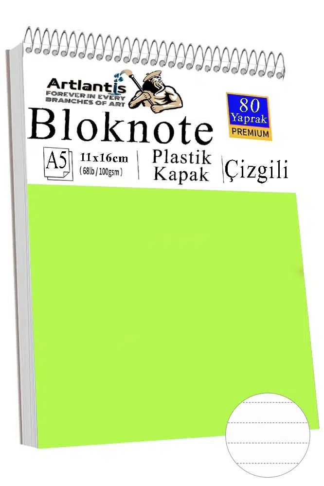 Artlantis Üstten Spiral bloknot defteri A5 boyutunda olup çizgili olarak gönderim yapılmaktadır