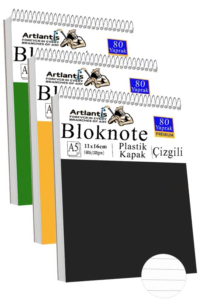 Artlantis Üstten Spiral bloknot defteri A5 10x15 boyutunda olup çizgili 3 adet olarak gönderim yapılmaktadır