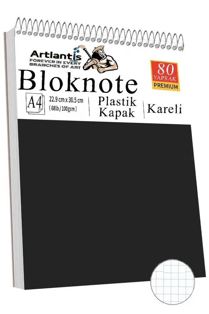Artlantis Üstten Spiral bloknot defteri A4 boyutunda olup kareli olarak gönderim yapılmaktadır