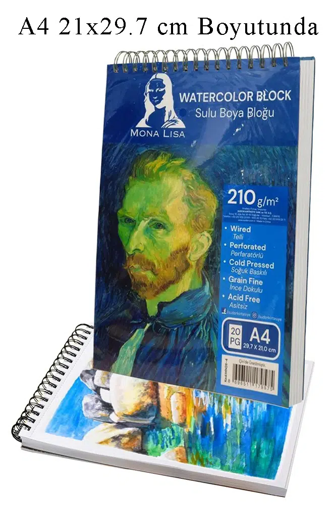 Ürün Adı: Telli Suluboya Bloğu A4 210gr 20 Yaprak İnce Dokulu Eskiz Defteri Sulu Boya Kağıdı Çizim Guaj Boya Gravür Karakalem A4 21X29.7 CM