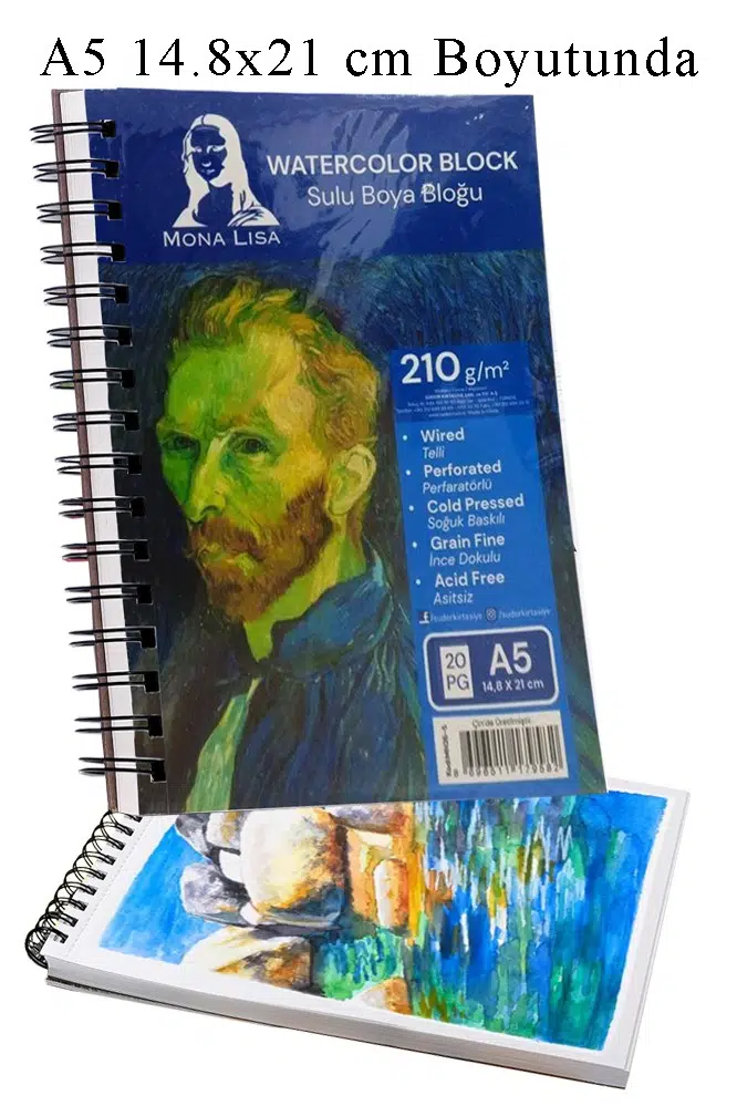 Ürün Adı: Telli Suluboya Bloğu A5 210gr 20 Yaprak İnce Dokulu Eskiz Defteri Sulu Boya Kağıdı Çizim Guaj Boya Gravür Karakalem