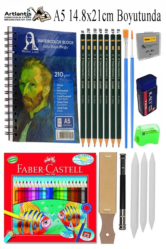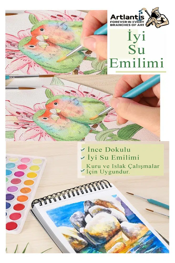 Ürün Adı: Telli Suluboya Bloğu Kağıdı A5 210gr 20 Yaprak İnce Dokulu Gölgelendirme Zımpara Aquarell Kuruboya Dereceli Kalem Uzatma